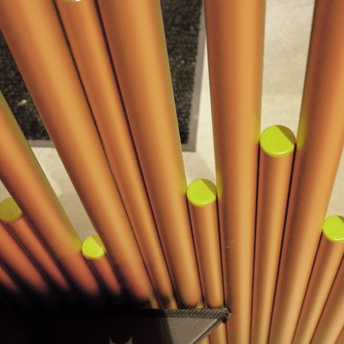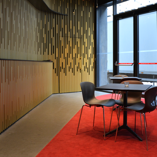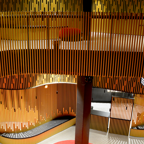 Man ønskede noget unikt og helt nyt til publikumsområderne. Dette indebar stave der skulle beklæde og adskille de forskellige rum. Denne måde at indrette på var ikke prøvet før, og der måtte undervejs udvikles nye metoder til løsningen af denne opgave.