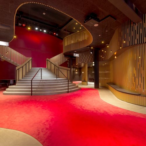 Der kunne overordnet ikke anvendes mange standart-materialer og løsninger til dette projekt, og mange dele måttes specialfremstilles. F. eks. den store foyertrappe. En timelapse film om dette Kan ses her under.