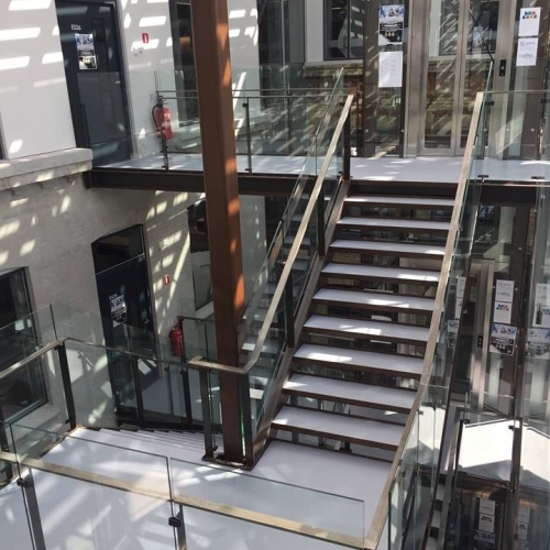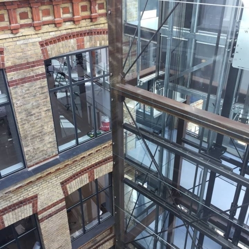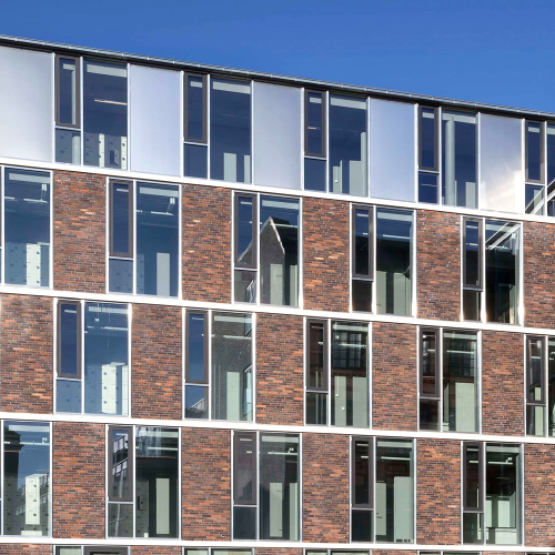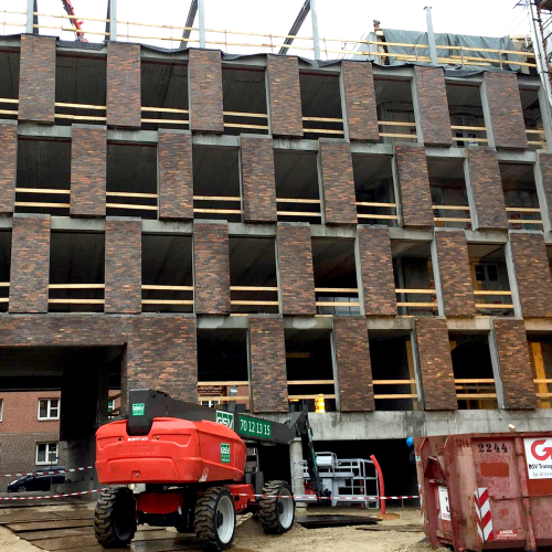 En helt ny facade ud mod Meinungsgade blev bygget i glas og stål og den indre gård skulle blive til et nyt atrium med elevator og trapper som en stålkonstruktion med adgang til alle de 4 tilstødende bygningsdele.
